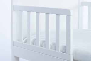 A gyermekbiztonsági korlát megvédi a gyermeket az eséstől, és nyugodt, zavartalan alvást biztosít. A bútor minőségét garantálja, hogy csak válogatott, hibátlan fenyőfaelemeket használunk. A kiságyat vízbázisú lakkozással lakkozták, amely biztonságos a gyermek és a környezet egészsége szempontjából.