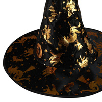 Egy vidám halloweeni kalap remek kiegészítő egy buliba vagy farsangra! A fekete kalapot aranyszínű varázslatos motívumok díszítik. Legyél Halloween sztárja ezzel a kalappal! A kalap átmérője 20 cm.