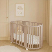 Ez a 3 az 1-ben kiságy ötvözi a funkcionalitást, esztétikát és biztonságot. Lekerekített formája bármilyen belső térbe illik, a masszív fa szerkezet pedig tartósságot biztosít.