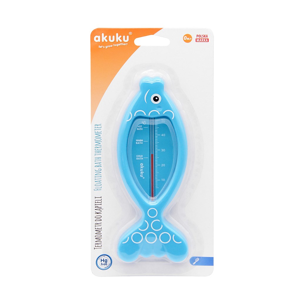 Gyermek színes, úszó vízhőmérő Akuku. A hőmérő a vízhőmérséklet mérésére szolgál egy baba fürdőben. A könnyűszerkezetnek köszönhetően a hőmérő lebeg a felületen. Kiváló minőségű és biztonságos anyagokból készül. Nem tartalmaz higanyt.