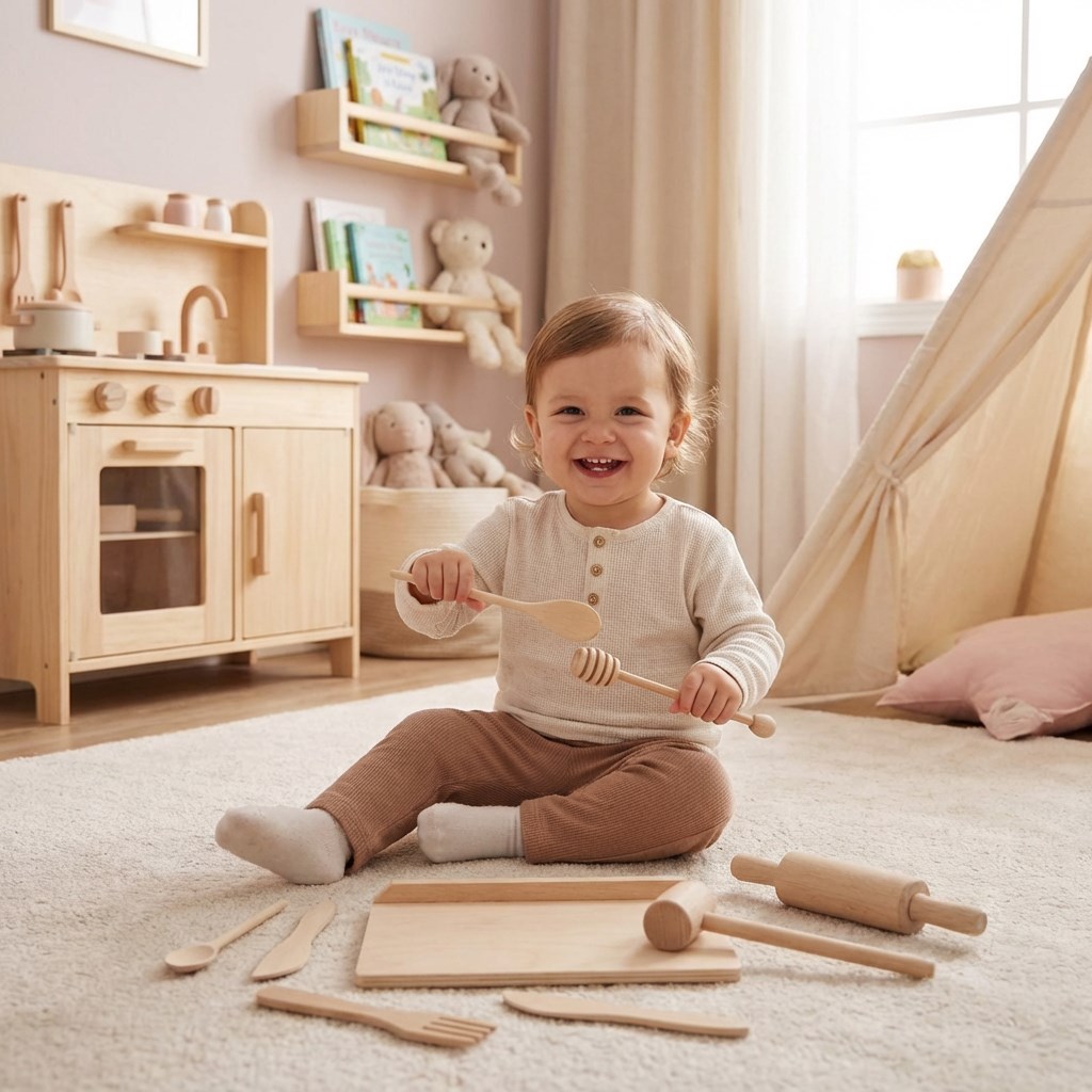 Légy te is konyhamester már egészen kicsi korodtól! Ez a bájos mini konyhai szett tökéletes a kis kezekhez és nagy kulináris álmokhoz. 100%-ban természetes, kezeletlen fából készült, biztonságos, környezetbarát és tele van fantáziával.