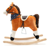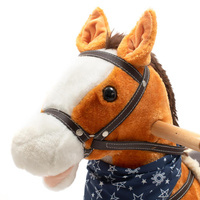 Aranyos hintaló piros sállal a nyakán. A füle megnyomása után a lovacska mozgatja a farkát és a száját, hangokat ad ki, vagy dallamokat játszik. Puha anyagból készült, ezért a gyermekek sokáig élvezhetik a szórakozást. A hintaló nyereggel, kantárral és fa kapaszkodóval rendelkezik. A hintaló fejleszti a mozgáskoordinációt és az egyensúlyérzéket is. Ez a fantasztikus hintaló tökéletes ajándék a gyermeke számára. Az elemtartó a hintaló hasán található.