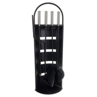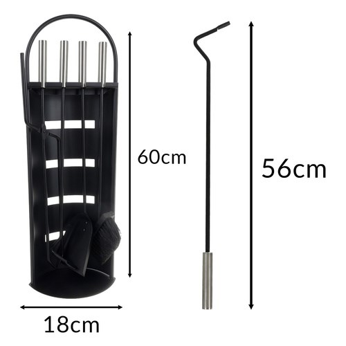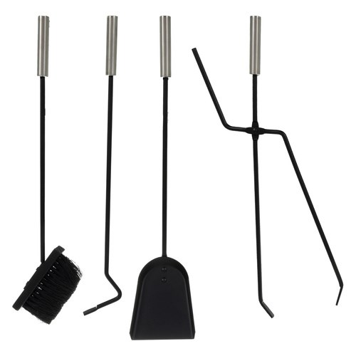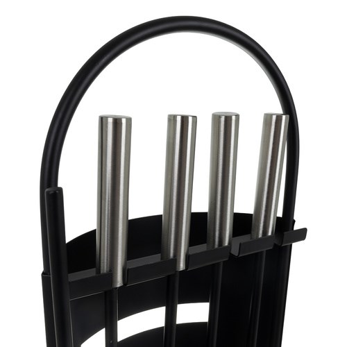 5 az 1-ben készlet – a csomag minden szükséges eszközt tartalmaz a kandalló vagy tűztér karbantartásához: fogó, lapát, seprű és piszkavas. Minden eszköz rendezetten elfér a mellékelt fém állványon.