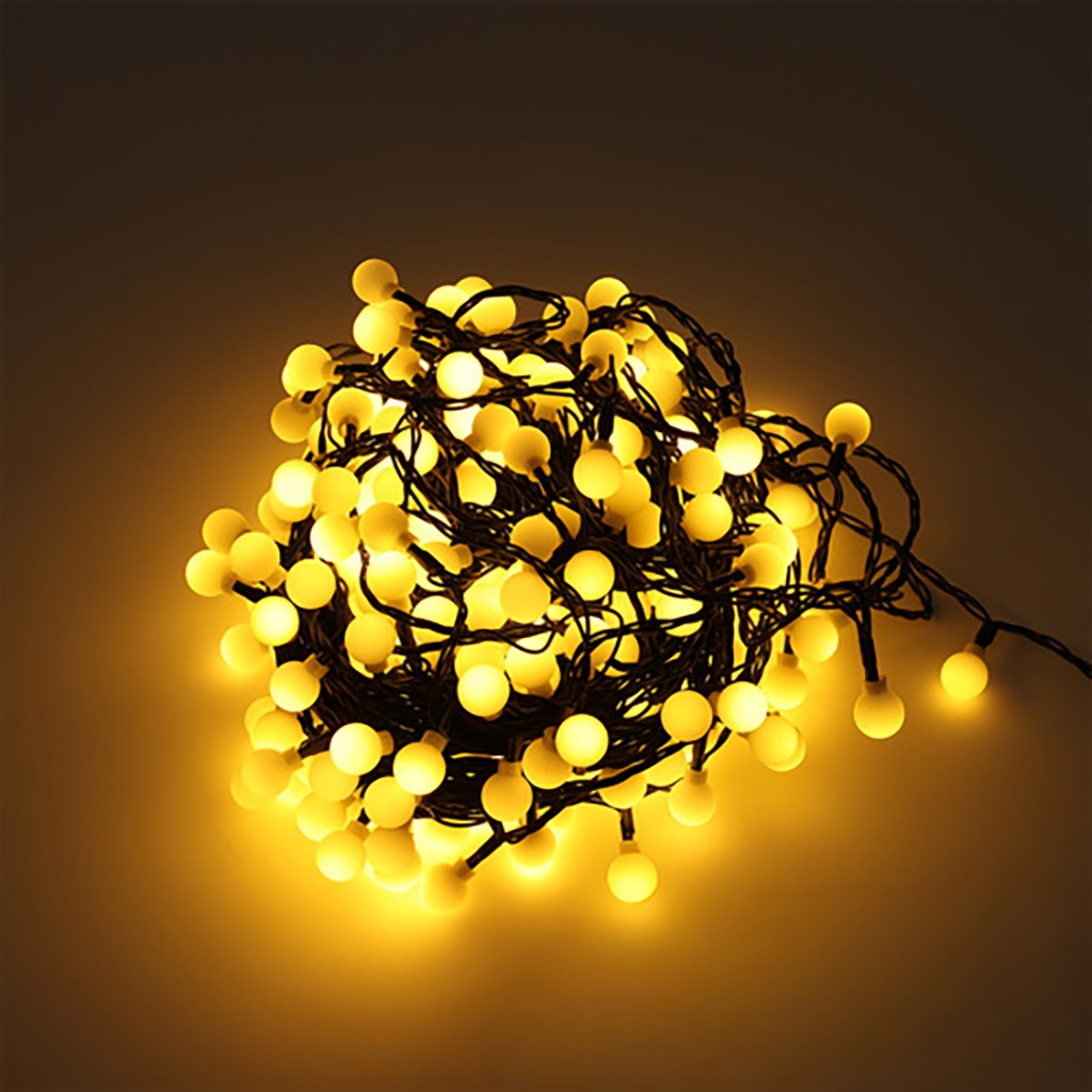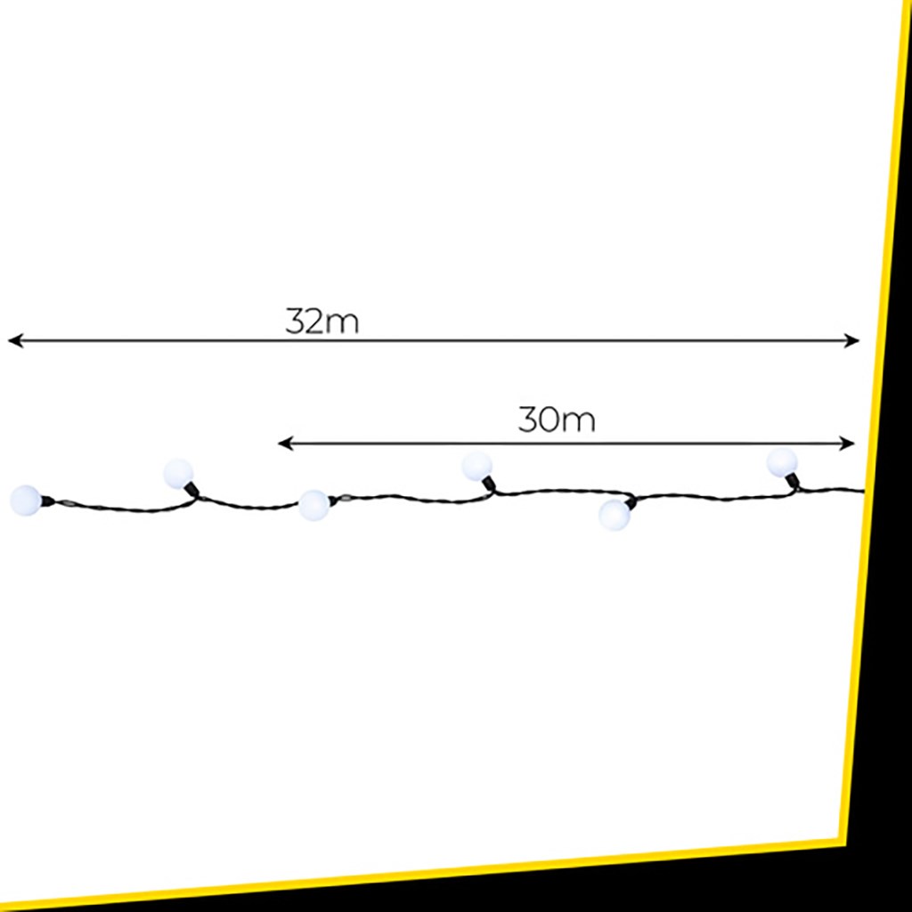 Karácsonyi LED fényfüzér – 300 LED meleg fehér gömbök, 30 m, IP44 – varázsold otthonod ünnepi hangulatba!