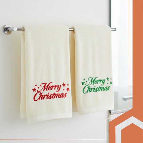 2 karácsonyi törölköző – fehér, „Merry Christmas” hímzéssel