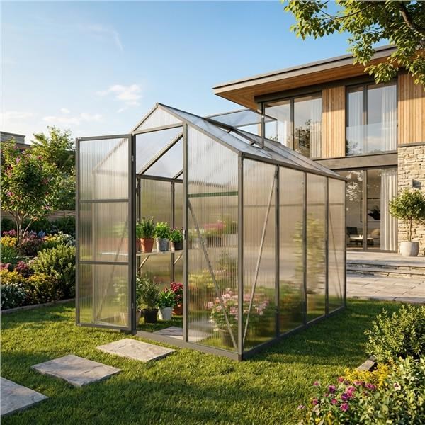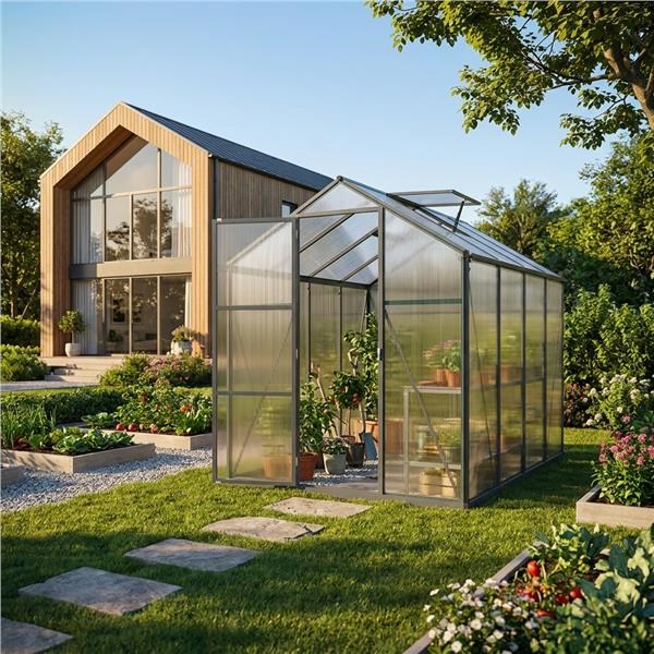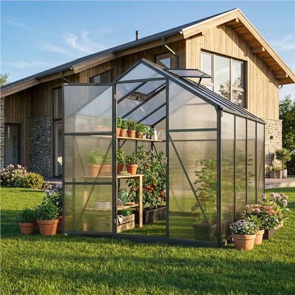 A kiváló minőségű, polikarbonátból készült kerti üvegház ideális megoldás mindenkinek, aki egész évben saját zöldséget, fűszernövényeket vagy virágokat szeretne termeszteni. Szilárd szerkezetének, kiváló időjárásállóságának és praktikus részleteinek köszönhetően az üvegház optimális feltételeket biztosít a növények növekedéséhez és a mindennapi használathoz.
