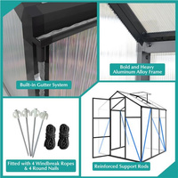 - A csomag tartalmaz köteleket és csapokat az üvegház biztonságos rögzítéséhez a talajhoz.
