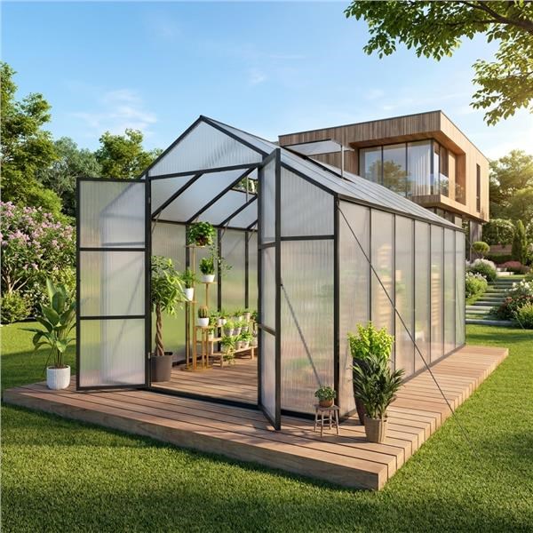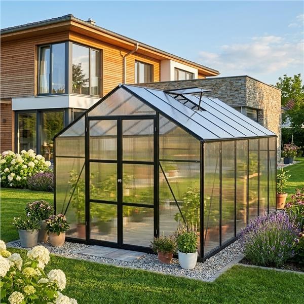 Kerti üvegház polikarbonát burkolattal és alumínium vázzal – ideális egész éves termesztéshez