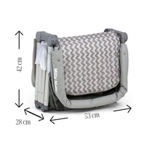 A kiságy praktikus "zsebbel" van ellátva a baba alapvető használati tárgyai számára.