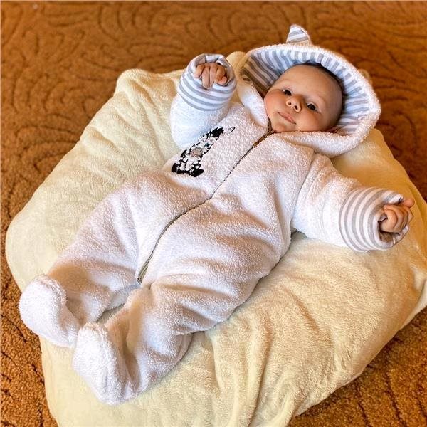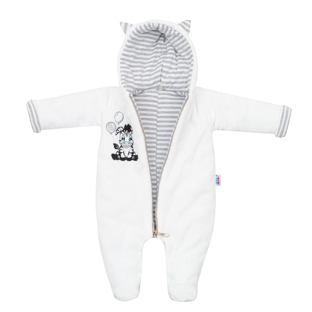 Aranyos luxus baba téli kezeslábas kapucnival New Baby Zebra, kisbabák számára. Szép, meleg, eredeti és praktikus. A kezeslábas aranyos zebra képpel és csíkos béléssel rendelkezik. Teljes hosszában cipzáros, ami megkönnyíti a baba öltöztetését és pelenkázását. Nagyon kellemes és puha Welszoft anyagból készült, amelyben a baba nagyon kényelmesen fogja érezni magát. A divatos dizájnak köszönhetően a kollekcióba a baba nagyon aranyos lesz. Anyag: 100% poliészter-wellsoft, bélés 100% pamut, töltet: antiallergén szál.