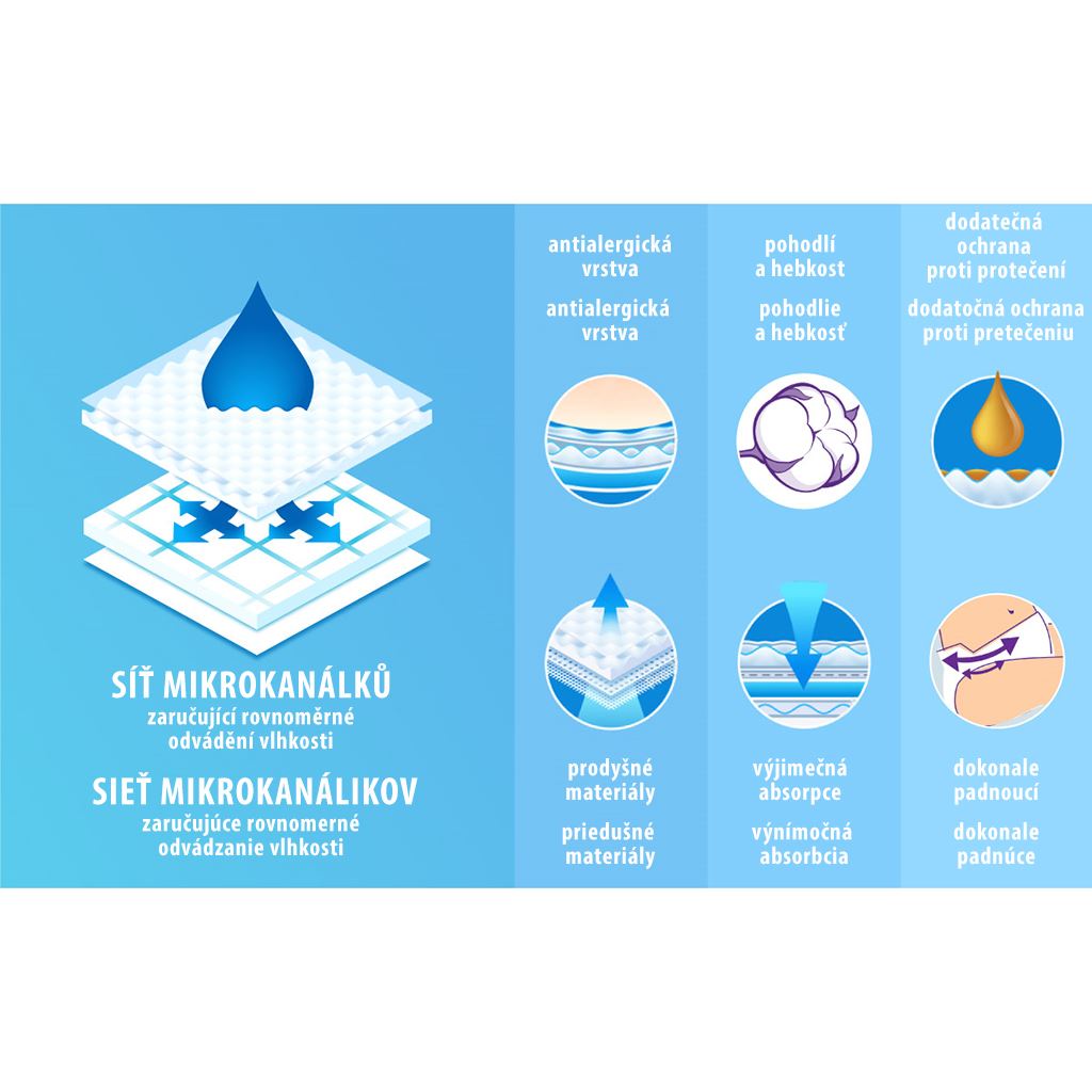 7 és 18 kg közötti gyermekek számára készült. A csomag 5x44 darabot tartalmaz.