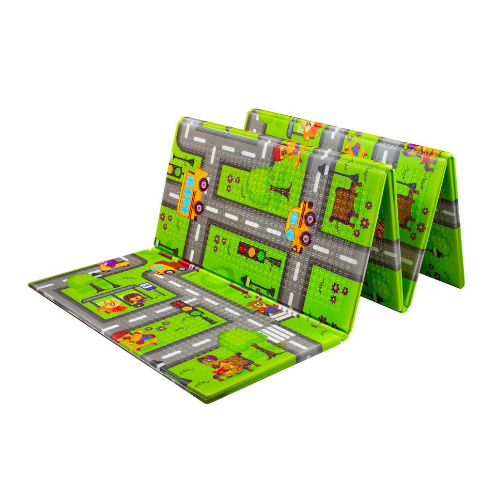 A PlayTo multifunkciós habszivacs játszószőnyeg sokoldalú felhasználást nyújt az egész családnak. Nélkülözhetetlen segédeszköz nem csak játszáskor, de könnyű torna mozdulatok elvégzésénél is hasznát veszi. Tökéletes gyermeke első ülés próbálkozásaikor és könnyen fejlesztheti vele gyermeke motorikus képességeit. Kétoldalú motívumnak köszönhetően használható otthoni tornázásra, matracként a sátorba, összecsukható nyugágyként a strandon, kertbe, vagy akár piknikezés közben is a szabadban. Előnyeit legfőképpen az óvodák, iskolák és gyermek központok értékelik majd, mint segédeszköz játszáskor és különféle tevékenységek elvégzésekor. Puha és kellemes tapintású anyagból készült. Kiváló hang és meleg szigetelést biztosít a hideg padlótól. Véd az atkáktól a szőnyegen vagy különféle sérülésektől, amelyeket szőnyegen csúszkálva szerezhet. Különlegesen tervezett csúszásgátló felülete megvédi gyermekét a nagyobb esésektől. Használatkor védi vele a padlót vagy szőnyeget a piszoktól vagy sérüléstől. Méretei 200x150 cm, de összecsukott formában 70x40x10 cm és könnyen becsomagolható a praktikus táskába, amely a termékhez tartozik.