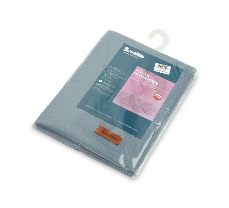 A muszlin takaró kiváló minőségű, 100% pamutszövetből készült. Két réteg pamutból készült, így könnyű és légies. Hasznosnak bizonyul a meleg, napos napokon tett séták során, és használható vastagabb takaróként, mindennapi játékhoz vagy takaróként etetés közben. A puha pamut megfelelő légáramlást biztosít, és nem érzékenyíti és nem irritálja a baba bőrét. A takaró további előnye az anyag gyönyörű textúrája.