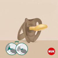 Természetes gumiból készült NUK For Nature babacumi, 6-18 h, 2 db-os kiszerelés.Természetes gumiból készült NUK cumik, származási hely: Németország. Természetesen BPA-mentesek, és megfelelnek az EN1400 európai biztonsági szabványnak. A NUK For Nature termékek összetevői legalább 98%-ban természetes eredetűek. A kemény részeket fenntartható műanyagokból gyártjuk. A természetes eredetet független tanúsítvány igazolja. A puha szopóka tiszta természetes gumiból készült. A 100%-ban növényi eredetű megújuló