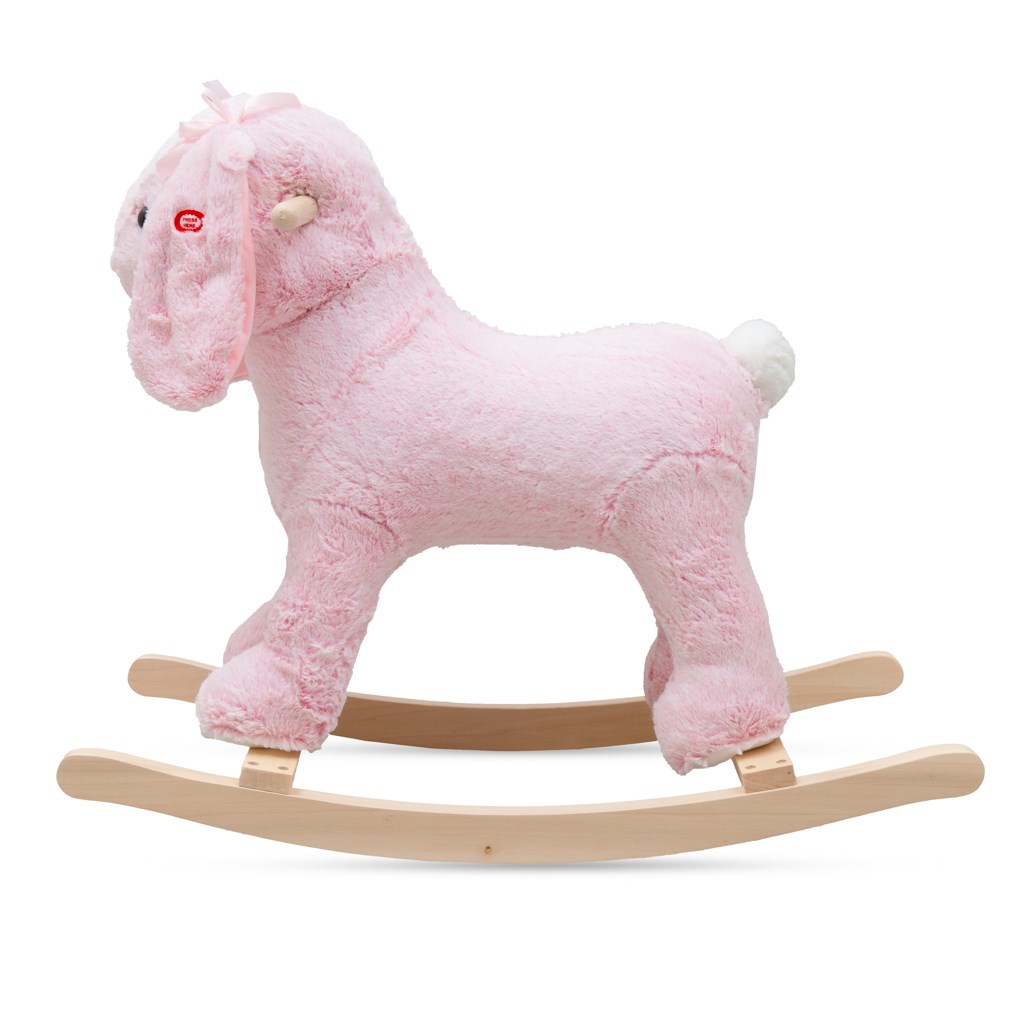 A stabil fa talpak és a kapaszkodók biztonságos ringatást tesznek lehetővé, míg a gombnyomásra aktiválható dallam fejleszti a hallást és örömet okoz a gyerekeknek. A nyuszin ülés van háttámla nélkül – ideális azoknak a nagyobb totyogóknak, akik már képesek egyedül megtartani az egyensúlyukat.