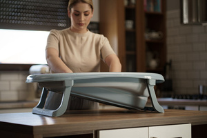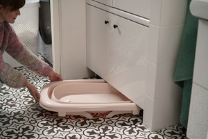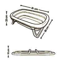 A babakád leeresztő dugóval és hőmérsékletmérő csíkkal van felszerelve, ami jelentősen növeli a kényelmet és a biztonságot a mindennapi használat során. Könnyedén összecsukható, így magassága mindössze 10 cm lesz, a műanyag lábak pedig közvetlenül a kád alá hajthatók – ennek köszönhetően minimális helyet foglal, és kisebb helyiségekben is könnyen tárolható.