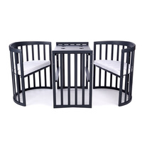 Ez a kiságy tanulásra vagy játékra alkalmas helyként is jól szolgál. Készítsen vele egy kényelmes asztal + két szék szettet. Az ülés és az asztal magassága állítható.