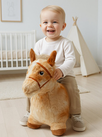 Plüss felfújható ugráló póniló. A játék vidám szórakozást nyújt beltéren és kültéren is. Ugráskor a gyermek erősíti a lábát, megtanulja koordinálni a mozgásokat és fenntartani a stabilitást. Az ugráló kényelmesen a fülénél megfogható. A játék hangmodullal rendelkezik, a fül közé nyomva reális hangot ad ki a póni. Plüss anyaggal van bevonva, amely kellemes tapintású és nem csúszik. A csomagban egy pumpa is található.és egy elem (3xLR44).