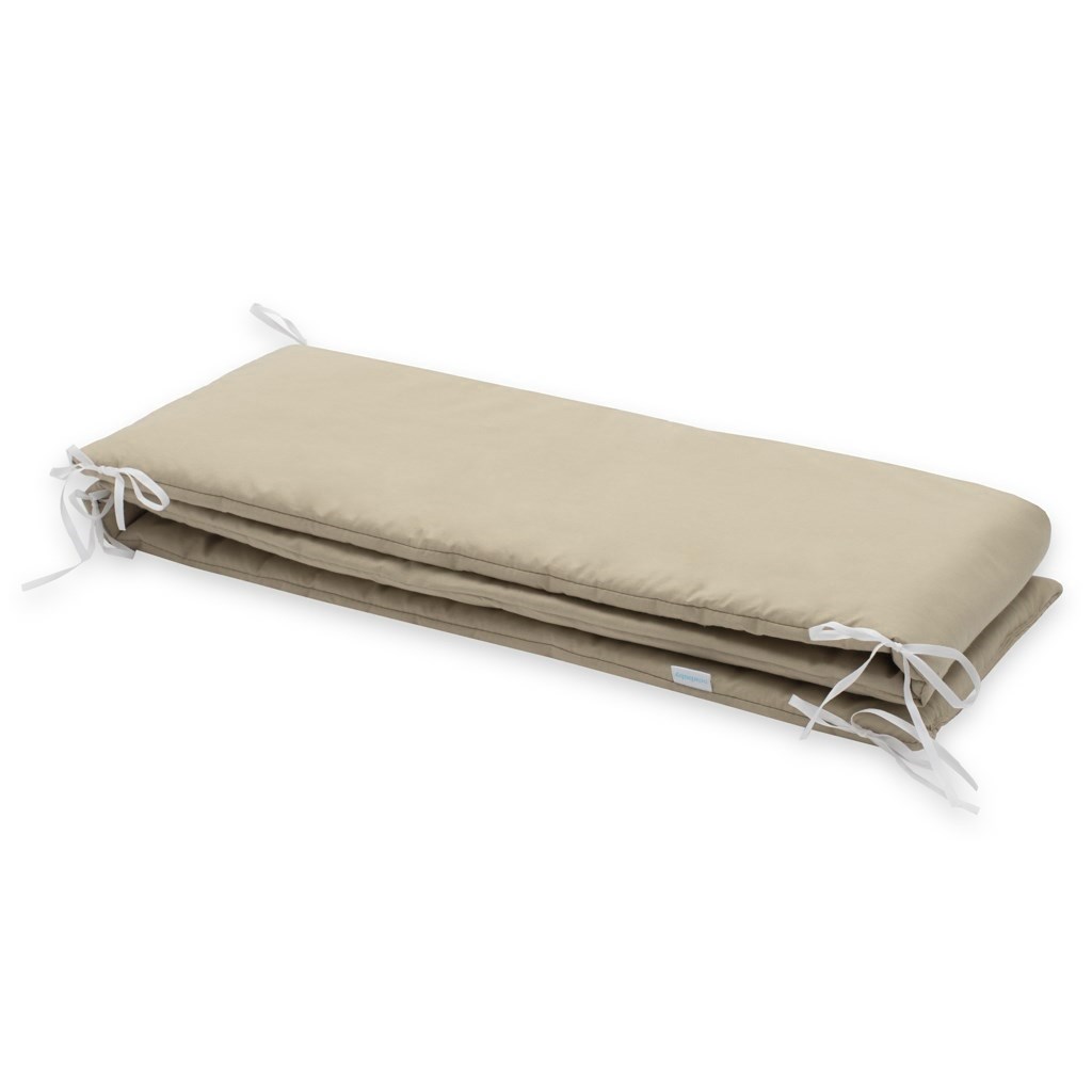 Divatos és praktikus rácsvédő kiságyba New Baby. Puha, kényelmes anyagból készült. Anyaga: belső oldal:100% pamut. Töltet: 100% poliészter. Az ágyhoz szallagokkal rőgzíthető. Mérete: kb. 180x30 cm.