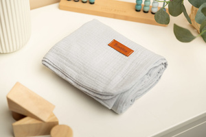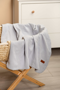 A muszlin takaró kiváló minőségű, 100% pamutszövetből készült. Két réteg pamutból készült, így könnyű és légies. Hasznosnak bizonyul a meleg, napos napokon tett séták során, és használható vastagabb takaróként, mindennapi játékhoz vagy takaróként etetés közben. A puha pamut megfelelő légáramlást biztosít, és nem érzékenyíti és nem irritálja a baba bőrét. A takaró további előnye az anyag gyönyörű textúrája.
