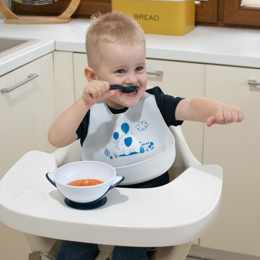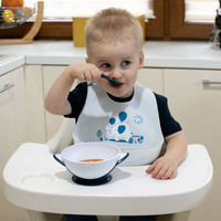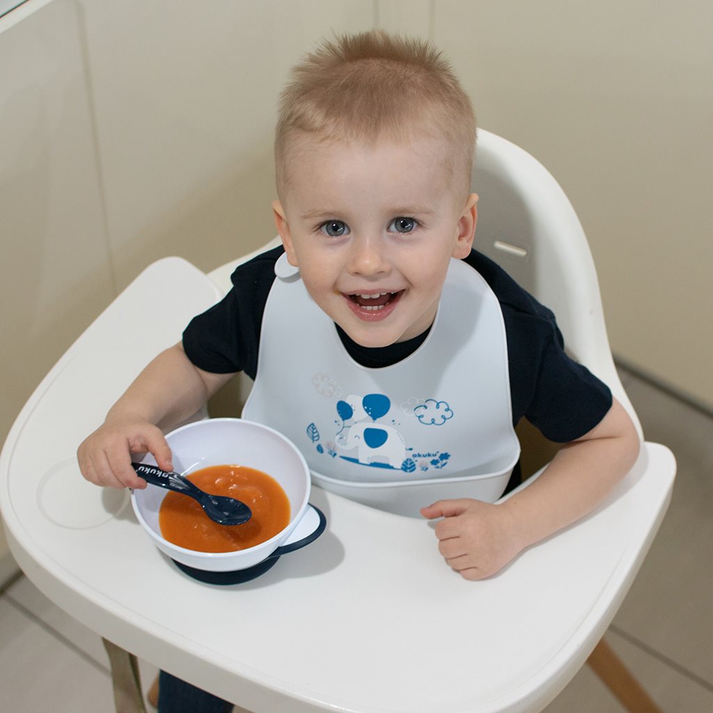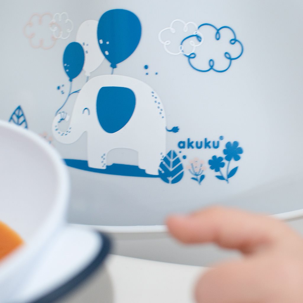 Praktikus műanyag szet, tálat és kanalat tartalmaz. 4 hónapos kortól ajánlott. Nem tartalmaz BPA-t.