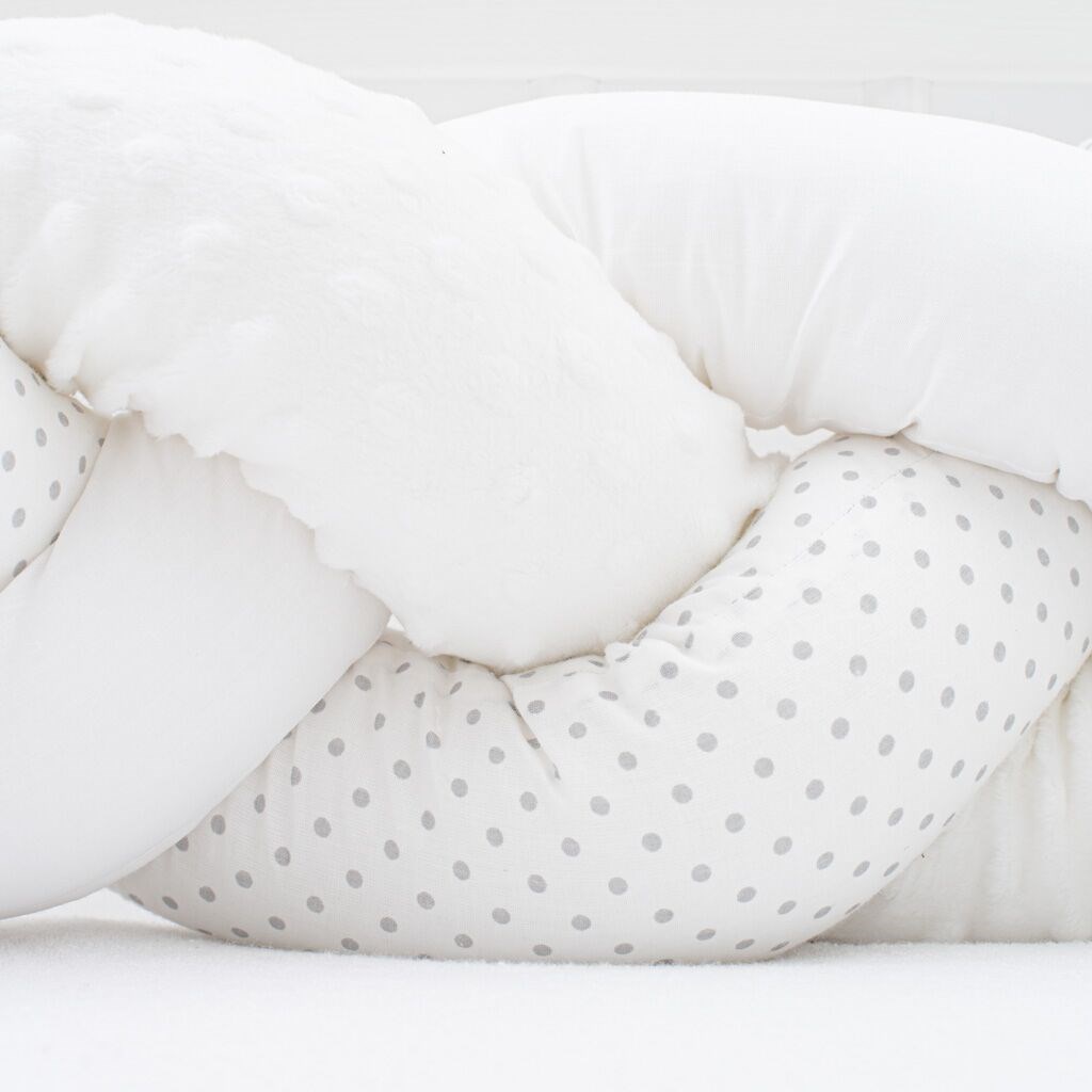 Pihe puha praktikus fonott rácsvédő kiságyba New Baby. A fonott copf a legdivatosabb és legszuperebb babaszoba kiegészítő. Minden darab egyedileg készül, a legjobb minőségű pamut és minky anyagokból, és antiallergén szállal vannak töltve. A rácsvédő kézzel fonott. Kiságyban, bölcsőben használható, ahol megvédi a gyermeket az esetleges, forgolódásból származó sérülések kialakulásától. A copf felhasználható babafészekként, vagy dekorációként a szobába, esetleg mint egy szigetelés a fal hidegétől. Minden végén szalag található, hogy a copfot a kiságyhoz lehessen rögzíteni. A rögzítéssel biztosítja gyermekének a biztonságos és egészséges alvást.